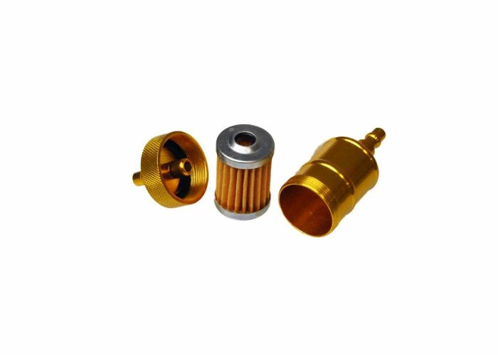 This little universal in-line anodized aluminum fuel filter works equally well on street-legal motor scooters, ATVs, dirt bikes, motorcycles, go-karts, dune buggies, and so much more
