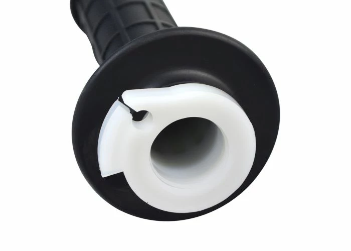 The right grip includes the accelerator plastic insert as pictured, the piece to which the throttle cable end will attach. We also carry a Universal Kill Switch and Throttle Cable Housing which is the piece into which the throttle grip will mount.
