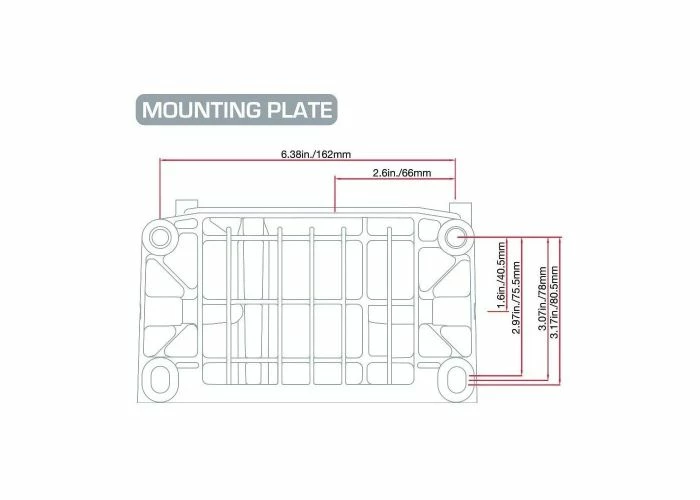 Mounting pattern: 6.40″ length x 2.95″ to 3.17″ width (162 mm x 75.5 mm to 80.5 mm)